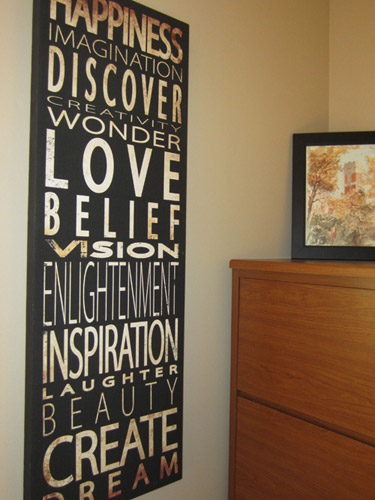 - Lighting is the biggest thing for me. I don’t ever use the overhead lights in my office. I picked up some inexpensive sconce lights at Walmart (literally $5 a piece) for my desk and a simple floor lamp. Completely changes the feel of an office. There’s a reason it’s called “mood lighting”!